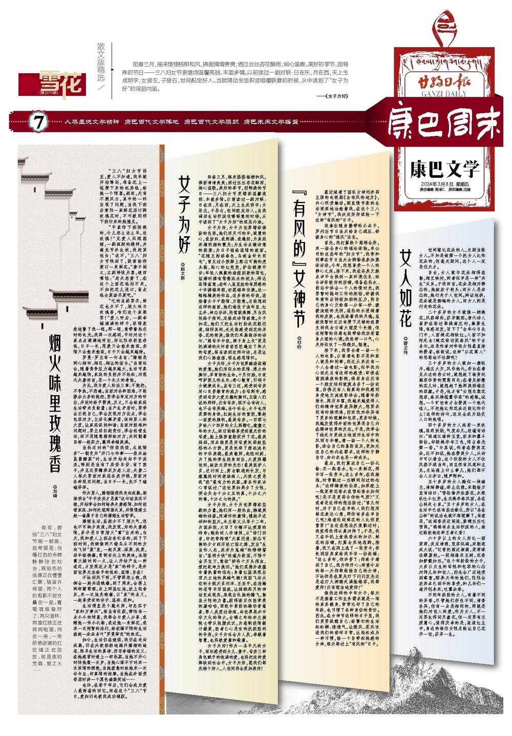 自古,女人就与花朵相得益彰,相互映衬,两者似乎是一种“共生”关系。于我而言,花朵是相对静态的,她绽放于枝头;而女人是动态的,她行走于人世间。辩证地讲,花朵就是酣睡的女人,而女人则是行走的花朵。