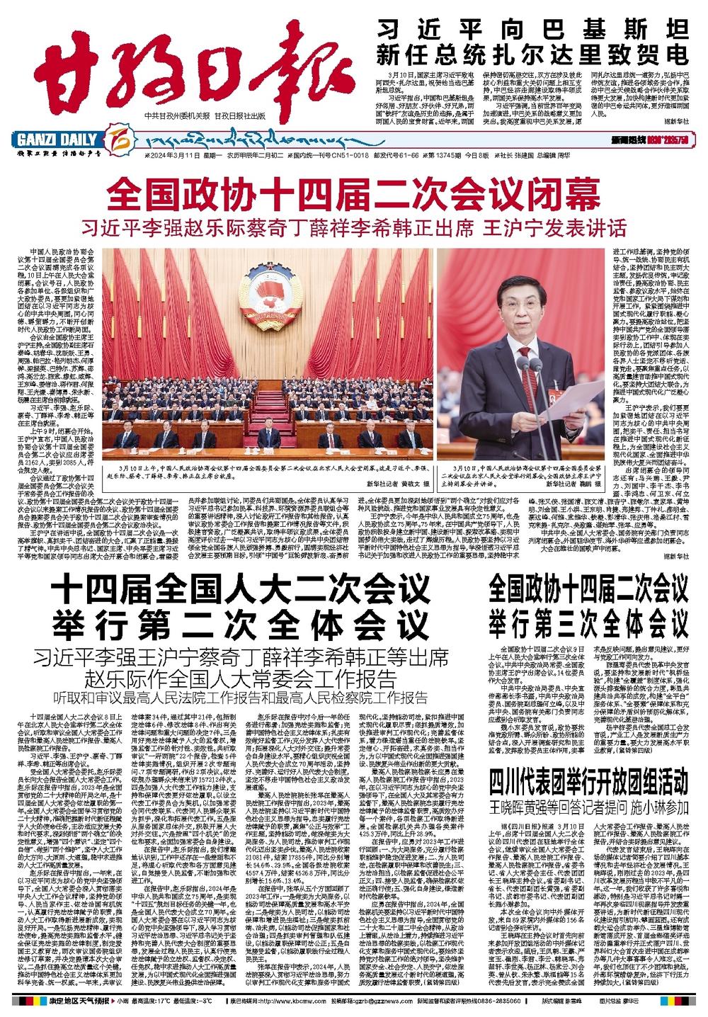 全国政协十四届二次会议闭幕