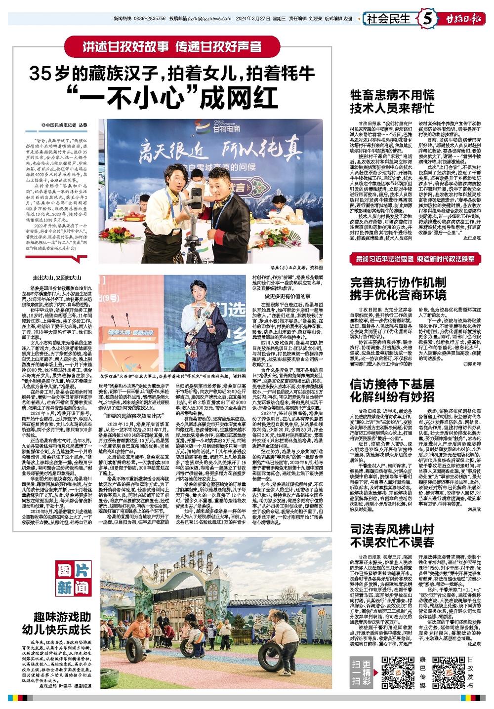 如今,洛桑通过短视频带货,不仅撑起了全家人的生计,还带动了当地农户就业,将特色农产品销往全国各地,助力家乡发展,做更多更有价值的事。“从外出务工到创业者,短视频改变了我的命运,我肩头的担子重了,但我乐此不疲,一切才刚刚开始!”洛桑信心满满地说。
