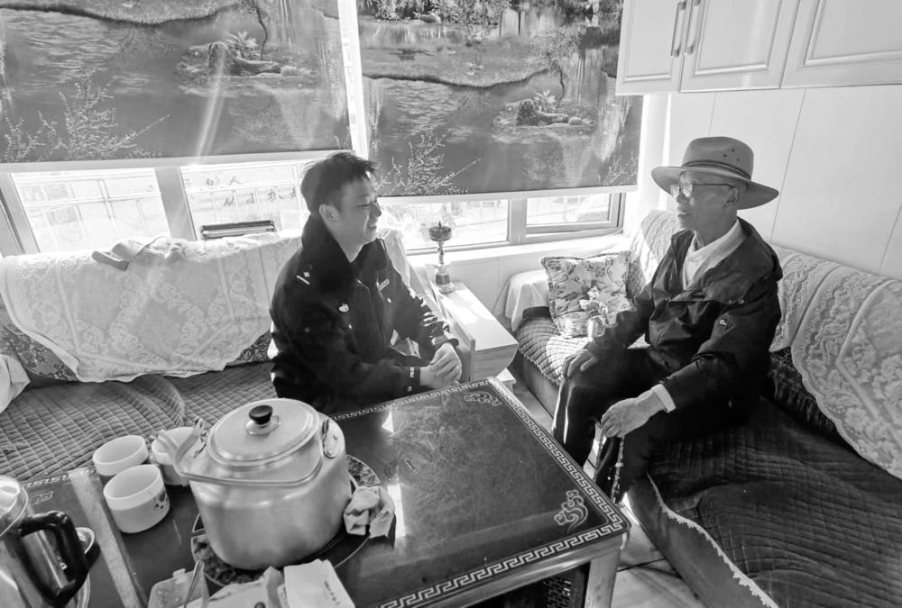 每逢传统佳节,王龙尧都会带着油、面、米等生活物资,走访联谊家庭,与其家庭成员开展互动,一起放牛、打扫卫生、做饭……真正把联谊家庭当成了“家人”。米米泽仁家庭是王龙尧联谊家庭中比较特殊的一户家庭,米米泽仁年纪大,行动不便,子女都在外地打工,成了村里的“留守老人”。2023年中秋节,王龙尧早早来到米米泽仁家,和米米泽仁一起炸麻花、打酥油茶、煮人参果,并为其做了一桌丰盛的团圆饭。