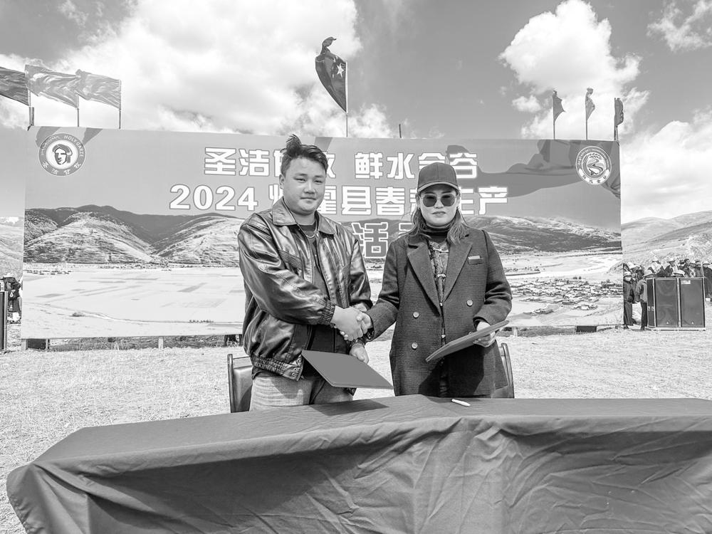 同时,炉霍县鲁川农业发展有限公司和炉霍县虾拉沱镇热固村村委会、甘孜藏麒特色农产品开发有限责任公司和炉霍县仁达乡仁达村村委会、炉霍县密奇奇食品有限公司和炉霍县充古乡德依卓若种植农民专业合作社联合社代表们分别签订了青稞收购协议。