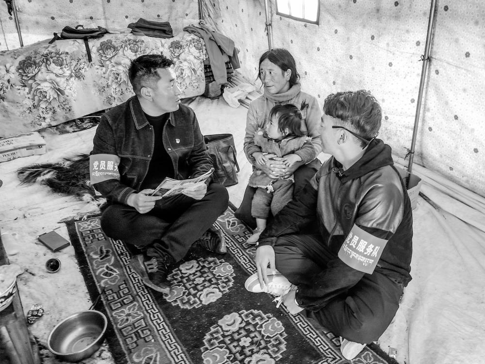 白雪皑皑的群山中,帐篷顶上鲜红的党旗猎猎飘扬,成为4200米海拔之上最亮丽的风景线。一切为了群众干,党员围绕群众转。虫草山上,临时党支部采取“牧羊式”管理模式,党员与采集群众同吃同住,亮出身份、深入一线,将管理服务触角延伸到群众身边。“有困难找党员、有问题找党员,临时党支部让辖区3100余名牧民群众有了‘主心骨’和坚强‘后盾’。”康勒乡党委书记呷波说。