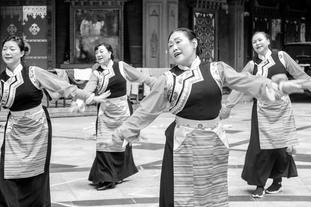 8月4日,在康定市东关木雅广场上,甘孜州老年大学的24名学员正在排练锅庄,为参加马尔康圈舞邀请赛做准备。