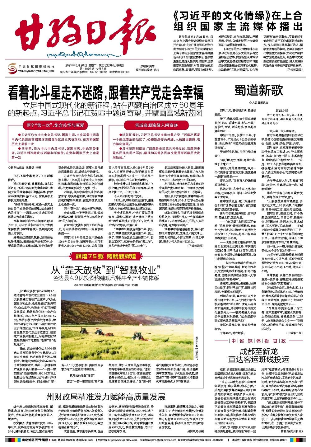 中共甘孜州委机关报·甘孜日报社出版