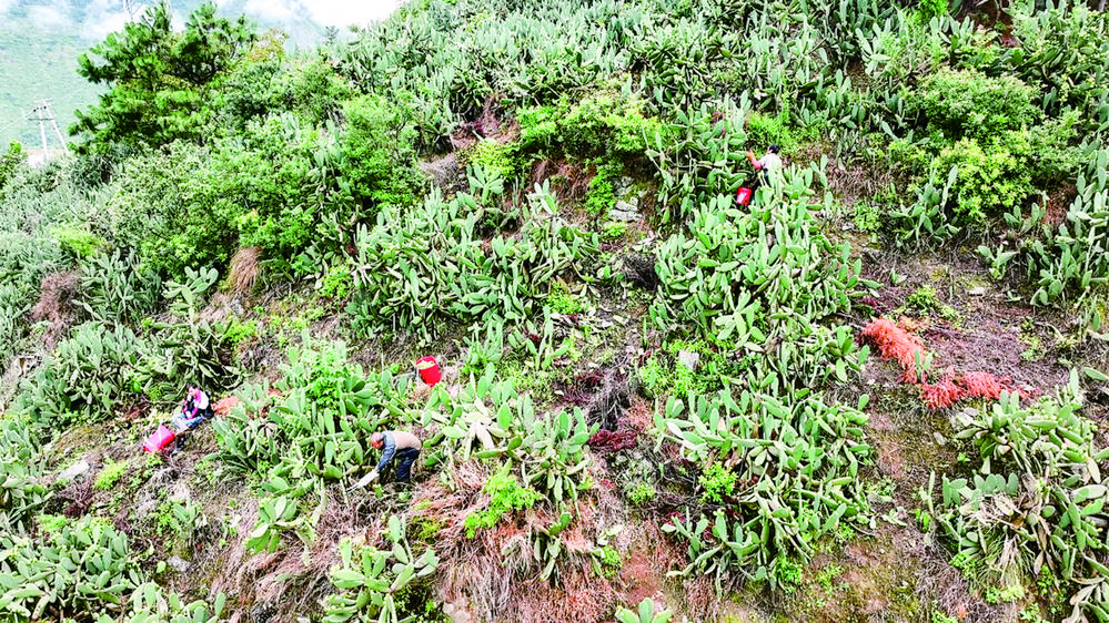 八月下旬,泸定县冷碛镇桐子林村的万亩仙桃迎来了丰收时节。漫山遍野的仙人掌丛中,饱满的果实挂满枝头,空气里飘散着沁人心脾的清甜果香。