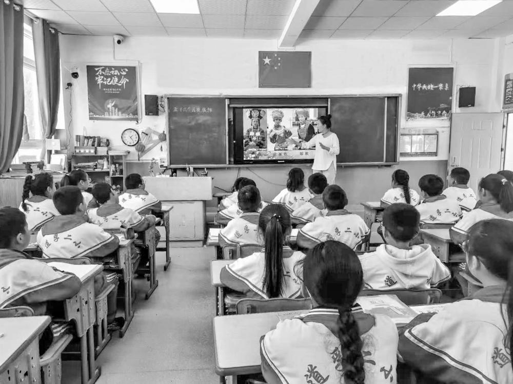 “56个星座56枝花,56个民族兄弟姐妹是一家……” 每年深秋,学校民族团结杯红歌赛会点燃校园。舞台上,不同民族的孩子们手挽着手、眼含着光,用嘹亮的歌声传递民族情、歌颂新时代。