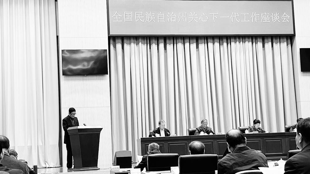 2025年10月24日,深秋时节的新疆伊犁,叶红草黄,天高云淡。全国民族自治州关心下一代工作座谈会正在这里举行。第三个走上会议发言席的正是我州关心下一代工作委员会常务副主任胡德明,他代表甘孜州交流发言的题目是《共讲籽籽同心好故事,共建中华民族共同体》。这次发言得到了与会各民族自治州关工委代表的热烈欢迎和极大反响。