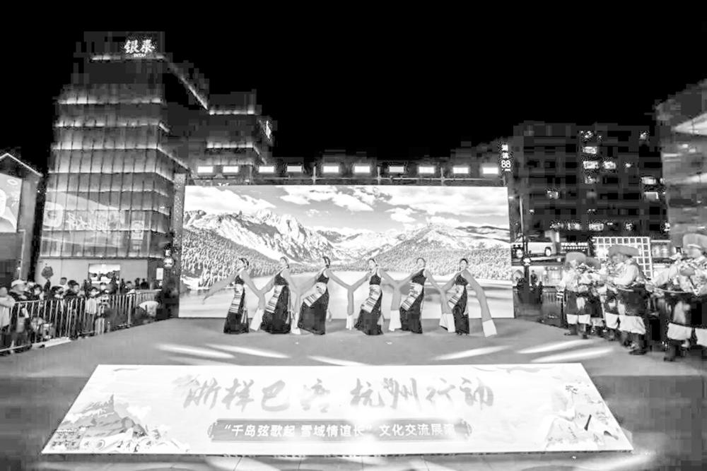 11月4日,西子湖畔弦胡声声、哈达飞扬——浙样巴塘杭州行动“浙风润巴塘嘻啵共此时”文化交流展演以巴塘非遗节目对话杭州的江南雅韵。藏式风情与宋韵美学在这场展演中实现了一次文化交流的深情握手:交往缩短山海距离,交流激活古老非遗,交融绘就两地同心。