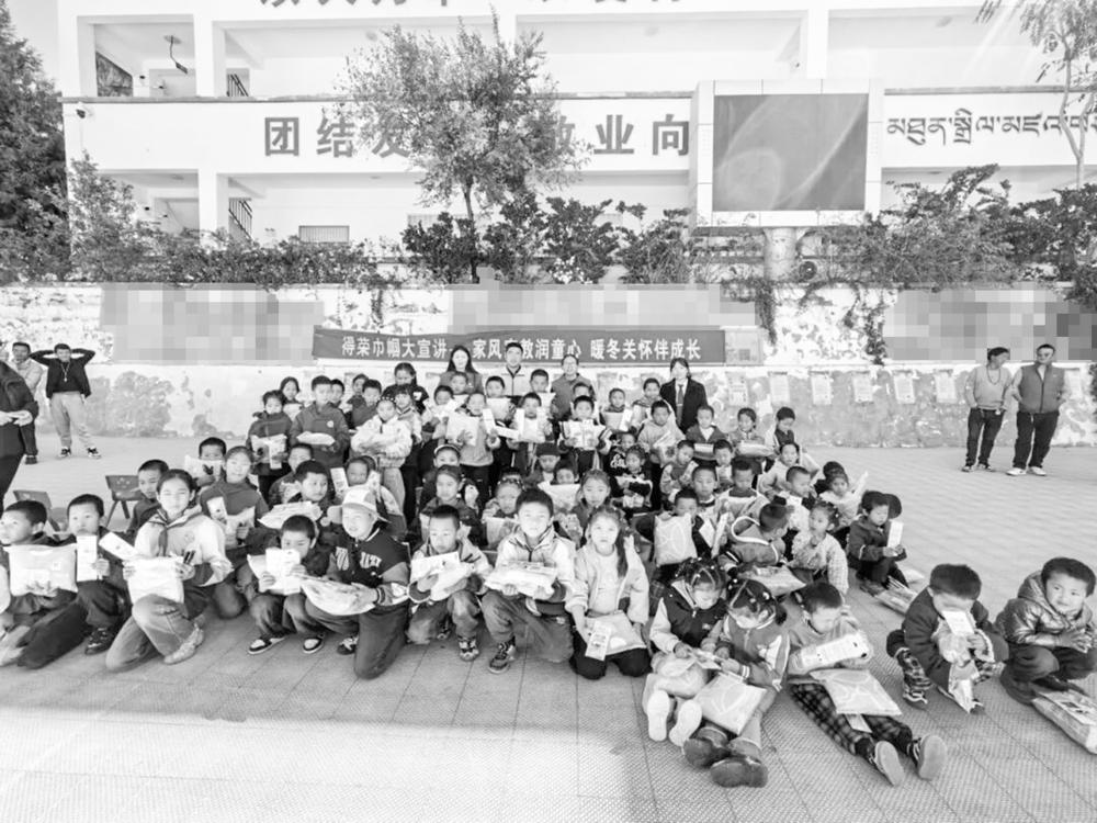 宣讲结束后,工作人员为全校学生送上暖心“成长礼包”,其中既有抵御严寒的保暖内衣,也有铅笔、尺子等实用文具用品。