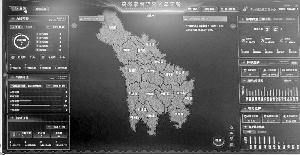 我州是全国森林草原防火重点区域。如今,在这片土地上,“人防”的坚守与“技防”的赋能仍在深度融合。“甘快传”与无人机的协同应用,推动我州实现“三个转变”:从“人海战术”向“智慧防控”转变,全州1211个防火卡点配备智能终端,实时上传巡护数据;从“被动处置”向“主动预防”转变,通过AI分析气象数据,提前48小时预警高火险区域;从“单兵作战”向“全民参与”转变,群众通过小程序参与防灭火工作,形成“人人都是护林员”的格局。康巴大地正以持续的努力,让青山常绿、林海安澜,为人与自然和谐共生的现代化写下生动注脚。