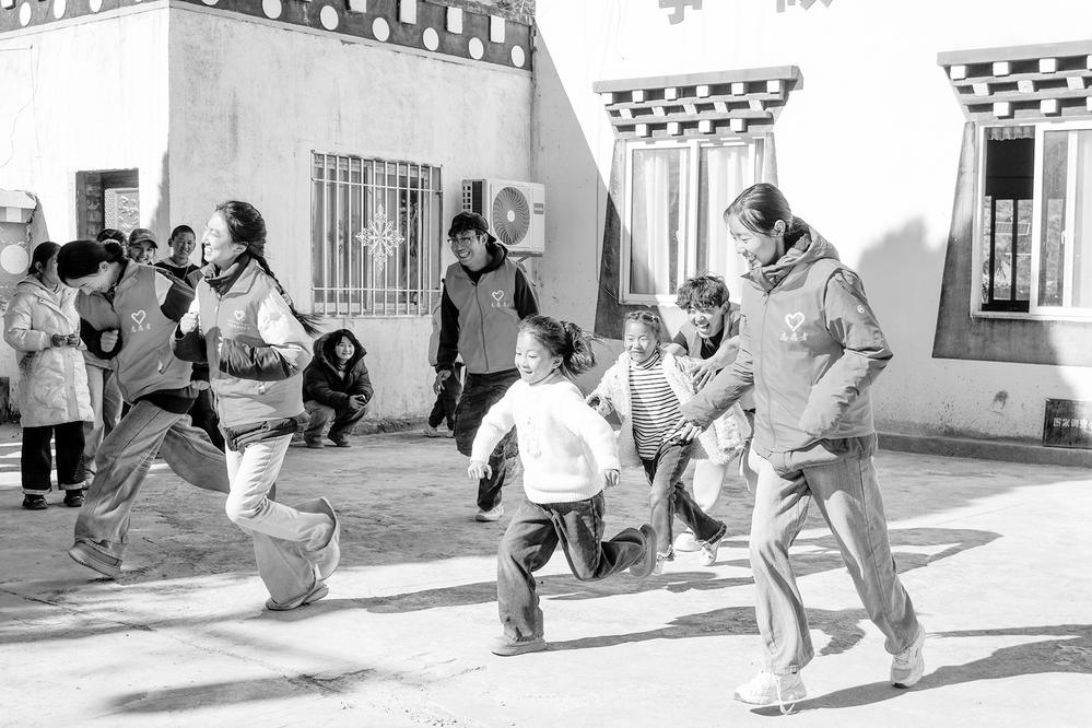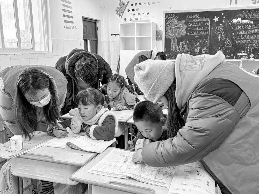 城关小学的操场上,志愿者领着孩子们玩“老鹰捉小鸡”的游戏,此起彼伏的欢笑声打破了校园的宁静,游戏结束,孩子们提着垃圾桶,弯着腰捡拾散落的垃圾,稚嫩的身影成了校园里一道别致的风景线。十几公里外的青德镇热宫村活动室,另一番景象同样温馨。26名学生与大学生志愿者两两相对而坐,埋首书写寒假作业,课间时分,村活动室的坝子又成了欢乐的海洋,跳皮筋、做游戏的身影,将乡村的冬日装点得格外热闹。