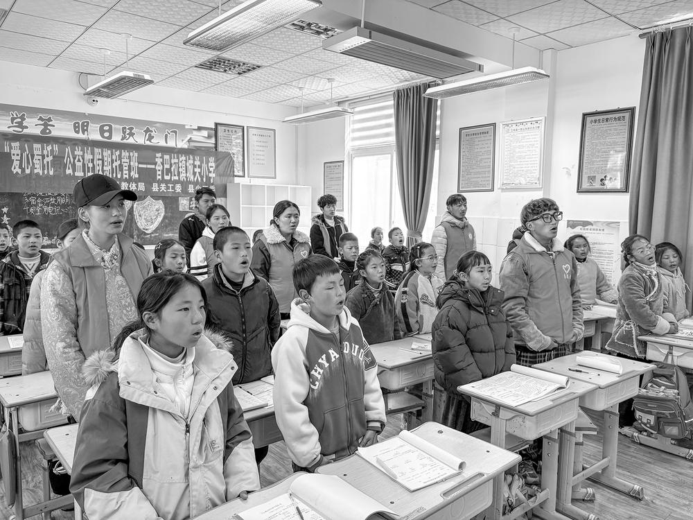 本报讯 清晨的阳光漫过乡城县城关小学的窗户,志愿者扎西俯身课桌旁,指尖落在算术题上,轻声细语为孩子拆解解题思路。隔壁教室传来清亮的童声合唱,“五星红旗迎风飘扬”的旋律悠悠回荡;不远处的红军长征纪念馆内,孩子们仰着小脸,凝神聆听讲解员讲述红军过乡城的往事,话音刚落,一只只小手便争先恐后地举起:“我知道!红军是1936年到我们乡城的!”这是1月21日乡城县寒假“爱心蜀托”公益性寒托班开班后的日常图景。