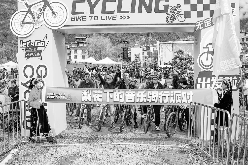 培土仪式后,四条精品旅游线路和全国世界“最佳旅游乡村漫游手账”正式发布,为游客打造了一份可感可及的行走文旅指南。随后,乡村代表们共同将清泉注入装置,水光流转间,“清泉润泽沃土,众志共绘宏图”的美好愿景清晰呈现,传递出乡村携手发展的坚定信念。随着发令枪响,梨花下的音乐骑行派对正式发车。骑手们从海子坪出发,沿着村寨间的蜿蜒道路,穿行在如云似雪的梨花海中。本次骑行线路经过精心设计,处处藏着惊喜与诗意:《绚丽的锦绣》《梨花下的成人礼》等沉浸式实景迷你剧轮番上演,让骑手与沿途游客在行进中感受丹巴的文化底蕴。