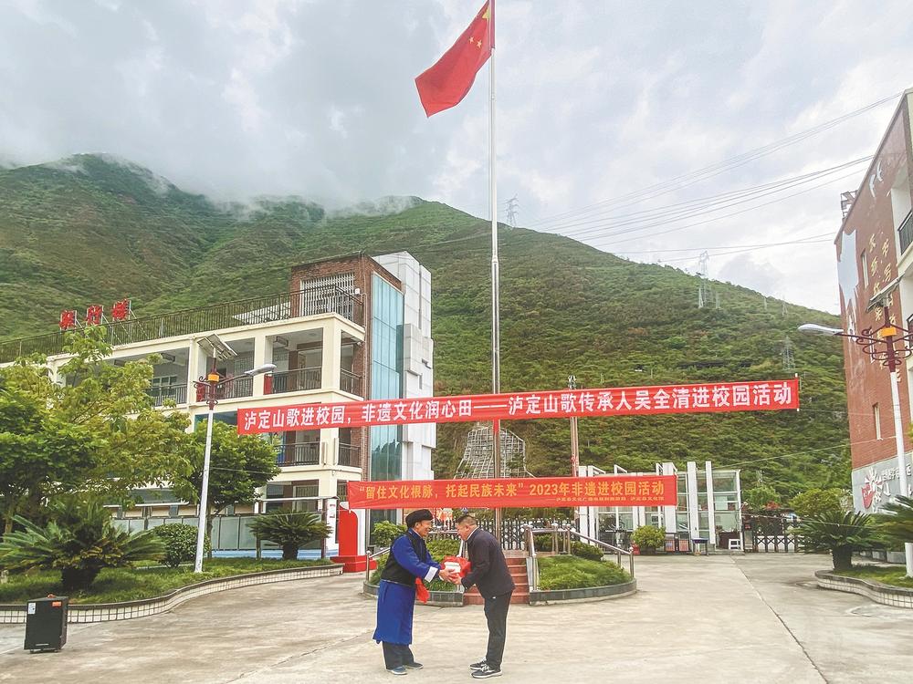 吴全清自己唱山歌还要教人唱山歌,泸定贡嘎山小学、泸定中学等学校都邀请他当老师,无论刮风下雨,只要给孩子们上课,他都从未间断。