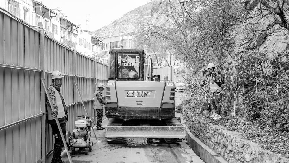 在泸定新城综合管廊项目复兴大道段的施工现场,挖机铁臂挥舞,工人们弯腰平整着裸露的地面;老旧小区院内,施工人员正对新铺设的水泥路面进行养护……