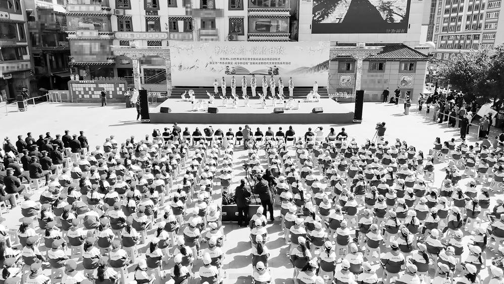 本报讯 “北国风光,千里冰封,万里雪飘……”4月23日上午,随着雄浑而整齐的诵读声响起,以“书香天府·悦读甘孜”为主题的甘孜州“全民阅读活动周”启动仪式在康定市情歌广场举行。这是《全民阅读促进条例》实施后,我州迎来的首个“全民阅读活动周”。当天,上千名干部群众与学生齐聚一堂,以一场气势恢宏的“千人诵读”活动,为圣洁甘孜开启一场书香盛宴。